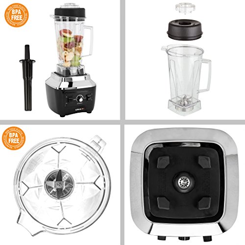 Praktisch unverwustlicher 2-Liter-Behalter - Frei von BPA (hormonell wirksame Chemikalie) mit Abdeckkappe - inkl. Stossel; Leistungsstarker 1.500 Watt-Standmixer - Thermisch geschutzter Motor fur optimale Leistung mit gekapselten 6-fachen Klingen aus rostfreiem Edelstahl und versiegeltem Kugellager
