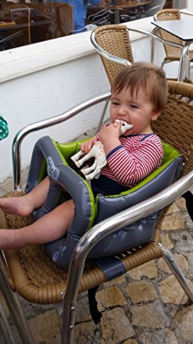 The ONLY HANDBAG/STROLLER PORTABLE travel high chair with a padded seat, padded sides, padded backrest AND a front bumper bar that aids sitting up development. Suitable for children from 6 months plus to 3 years or 33lbs/15kgs