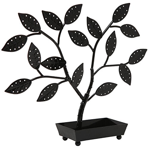 MyGift Jewelry Tree, Earring Necklace Hanger Holder with Ring Dish Tray, Black
