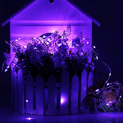 BINZET 5M 50leds Battery Operated Remote Controlled Purple Flash LED Starry String Lights Flexible Bendable Indoor outdoor String Lights for Wedding Party Christmas Halloween Decoration