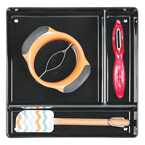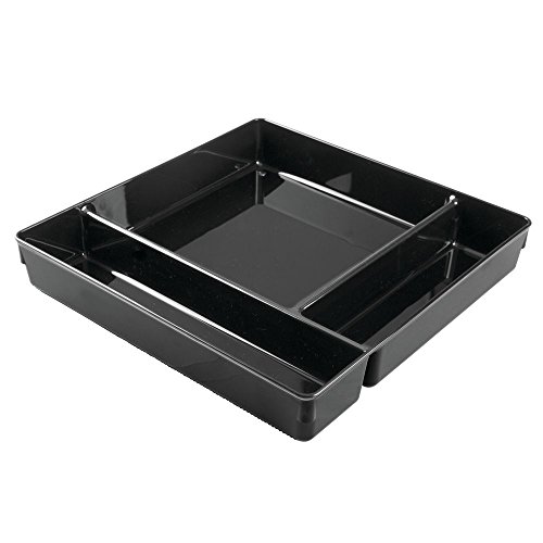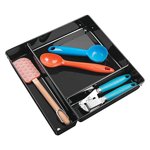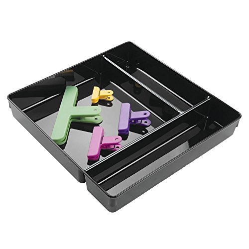 InterDesign Linus Kitchen Drawer Organizer for Silverware, Spatulas, Gadgets - 12" x 12" x 2" - Black