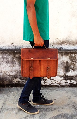 -. Feature : Dimensions : 10 X14 X 4 inches (height, width, depth) . Delivery Via DHL even on standard shipping. / 100% light weight goat leather bag. Ideal for 13" inch netbooks , small laptops & tablets / Ipads Comes with padded partitions. No nasty chemicals used for tanning, won't cause any allergic disease if in contact with skin. / Has brass polished buckles . 100% rustproof.Adjustable shoulder strap , for best fitting for people of all sizes. / Two external front pockets for keeping misc. things. Has a sturdy canvas inner lining for real long life. Handle on top for it can be used as a briefcase. Has three partition inside for easy separation of things. / Has an full sized outer zippered pocket at the back. Please Ignore the estimated arrival time given by Amazon. Item will be with you in a week's time. *Please note* The original color may be lighter than the picture, however , with usage the leather darkens.