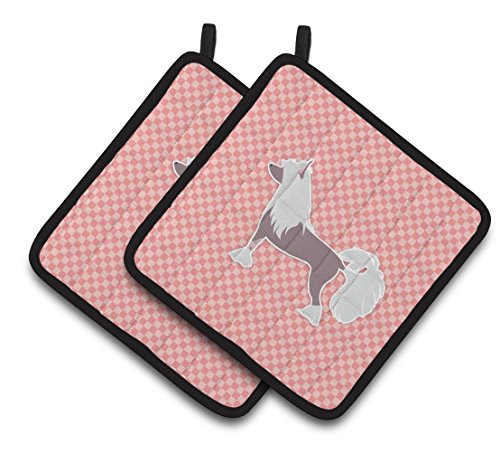 Caroline's Treasures Chinese Crested Checkerboard Pink Pair of Pot Holders BB3643PTHD, 7.5HX7.5W, Multicolor