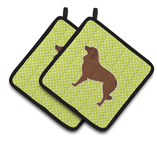 Caroline's Treasures Portuguese Sheepdog Dog Checkerboard green Pair of Pot Holders BB3831PTHD, 7.5HX7.5W, Multicolor