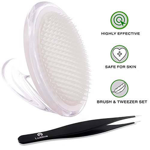 Exfoliator Brush & Ingrown Hair Stainless Steel Tweezer Set with Acupressure Microdermabrasion for Razor Bump face beard neck scalp bikini leg fascia...