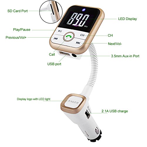 -. Title : YAKER High Quality LCD Display Wireless Bluetooth Car FM Transmitter Modulator+ Remote Control, Radio Adapter Handsfree Car Kit with Hands-Free Calling, Music Control, Mic, and Charging Port for iPhone ,iPod, Android Smart Cell phone, MP3 Players and Other Devices