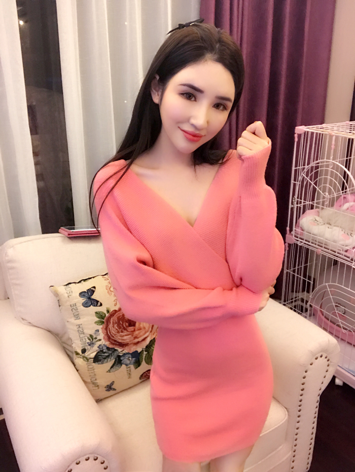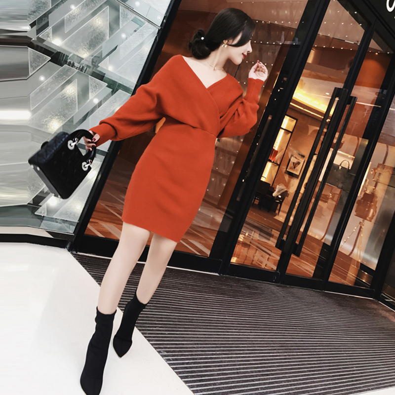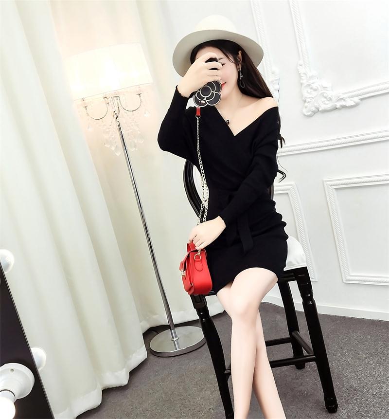 大人エレガント Vネック ドルマン オフショルダー ニット ワンピース ゆったり ミニ丈 シンプル フェミニン 秋冬