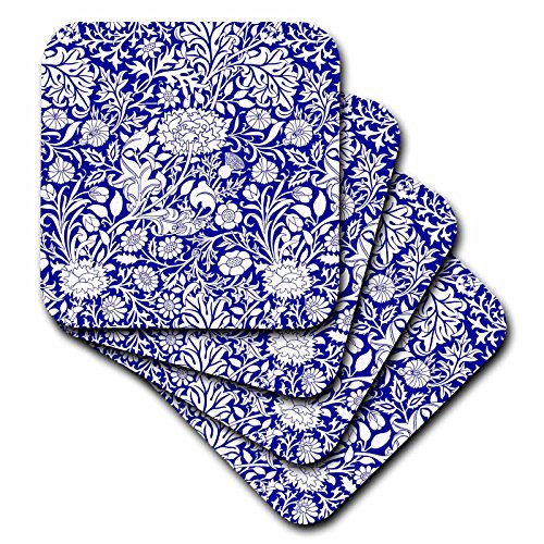 3dRose cst_219031_1 William Morris Cherwell Chintz Pattern in royal blue and white-Soft Coasters, set of 4