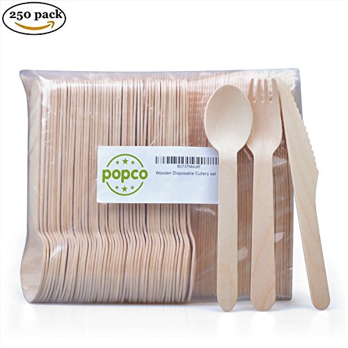 The Original POPCO Wooden Disposable Cutlery set ? PACK OF 250 PIECES 100 Forks ? 6.4 inch 100 Knives ? 6.55 inch 50 Spoons ? 6.2 inch ? PREMIUM QUALITY We produce strong and sturdy utensils, crafted with precision from top quality smooth Birchwood and looks amazing on the table. ? FOR ANY EVENT Great for any type of event ? party, BBQ buffet, outdoor camping, housewarming, wedding, baby shower, Thanksgiving dinner, company programs and much more. Great for any type of food ? meat and veggie main dishes, side dishes and desserts. ? TOXIN FREE Now you can stop using potentially unhealthy plastic utensils. POPCO cutlery set is made of toxin-free and dye-free natural wood. ? ECO-FRIENDLY Our cutlery set is 100% compostable and biodegradable. ? 100% SATISFACTION GUARANTEE If for any reason you are not fully satisfied with our product, you will get a full refund! ? 0 |
