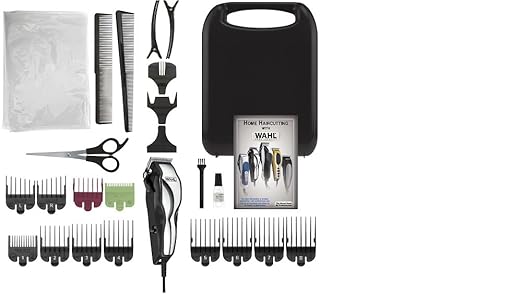 - Includes 2 combs; scissors; 2 hair clips; blade guard; barbers cape; cleaning brush and blade oil