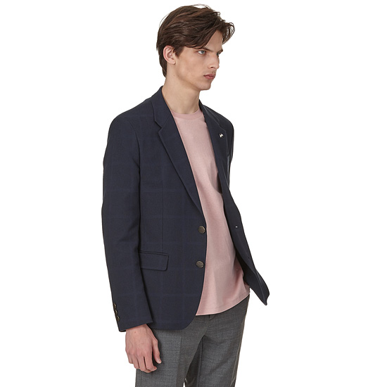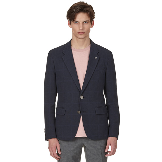 - 패턴화된 조직감으로 감각적인 솔리드 컬러의 남성 테일러드 자켓.