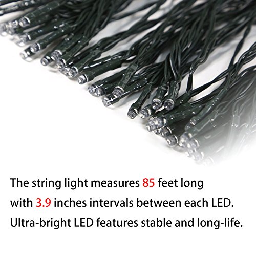- 85ft Super Long String - This solar LED lights has a 85ft long wire that can be shaped or wrapped around Christmas trees, houses and other larger objects according to your needs.
