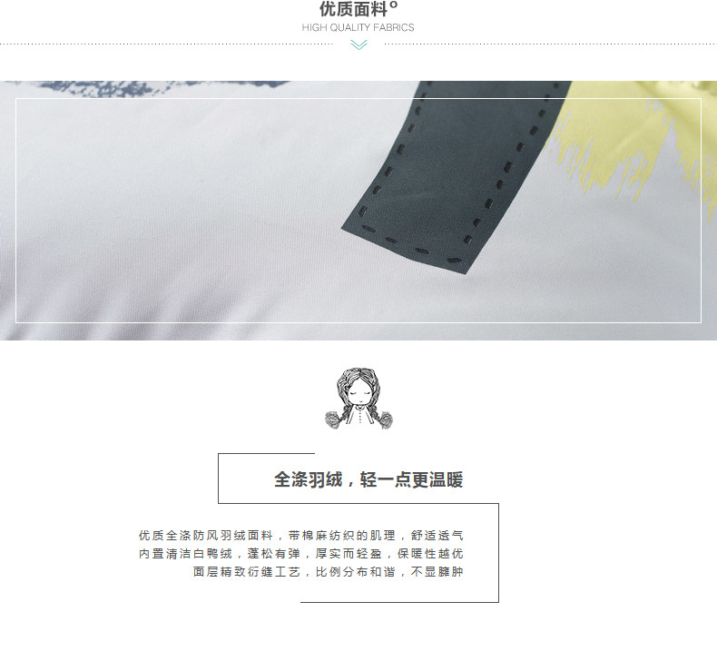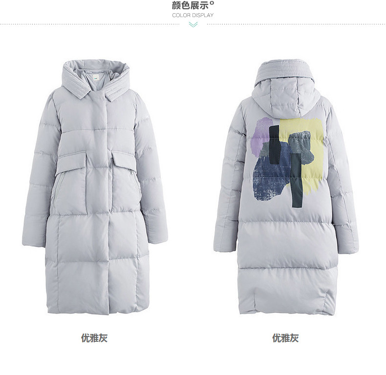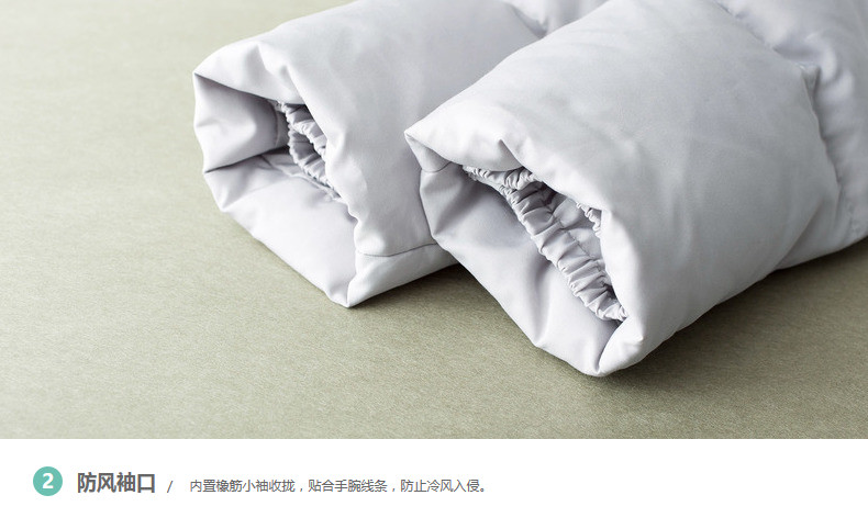 100%聚酯纤维 里料:100%聚酯纤维 填充物:白鸭绒 含绒量:80% 充绒量:175.2g(S)186.2g(M)197.2g(L) 208.2g(XL)