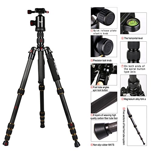 ZOMEI Z699C Carbon Fiber Portable Tripod with Ball Head Compact Travel for Canon,Sony, Nikon, Samsung, Panasonic, Olympus, Kodak, Fuji, Cameras and Video Camera