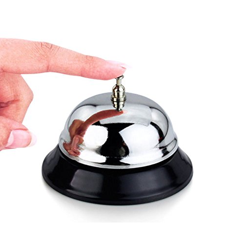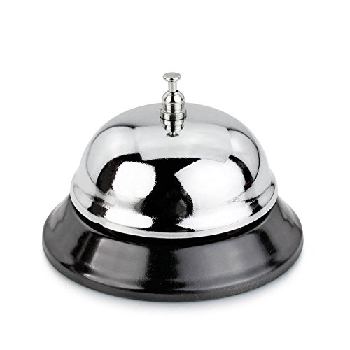 -. Feature : 1 steel call bell. / Size:approx 2.2 x 3.38 inch. / Chrome Plated Bell with Black Base. / Clear tone you cannot miss. / Perfect for reception counters, restaurant waiting areas or hotel lobbies.