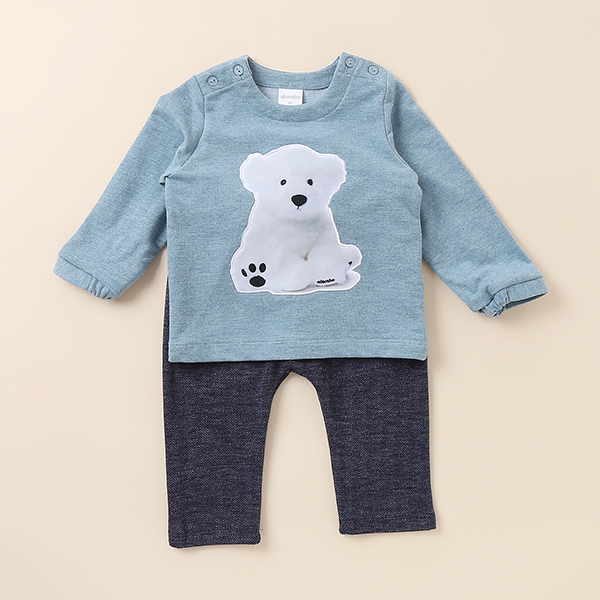 귀여운 곰인형 사진의 그래픽이 포인트인 상하복입니다