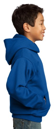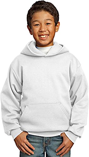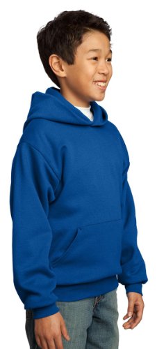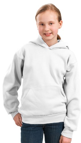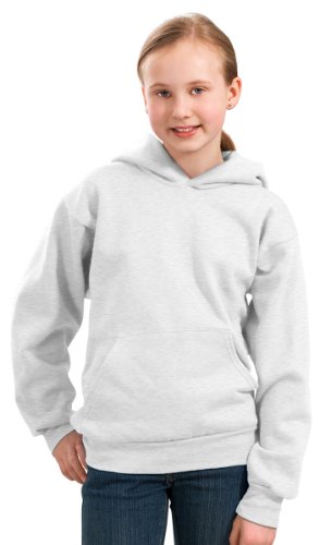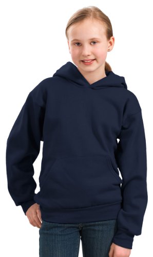 Product Description A cozy, no-nonsense sweatshirt, 7.8-ounce, 50/50 cotton/poly fleece, Air jet yarn for a soft, pill-resistant finish, Two-ply hood, No drawcord at hood, Set-in sleeves, Side seamed, Front pouch pocket, Rib knit cuffs and waistband, Youth Sizes: XS(2-4), S(6-8), M(10-12), L(14-16), XL(18-20). 0