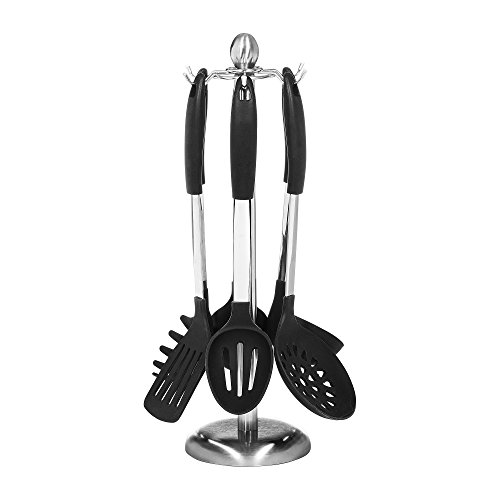 -. Feature : PUT THE FUN BACK INTO COOKING - You will love the soft feel of the silicone grips and the ergonomic design makes them very comfortable to use. They have flexible edges to protect your valuable cookware yet are very strong & durable. / DESIGNED WITH SAFETY IN MIND - The tools are large and generously sized, with an average length of 13.5 inches (35cm) to keep your hands away from the heat. You will also notice the tools are well balanced and store neatly on the utensil holder when not in use. / EASY TO CLEAN - The sleek stainless design looks awesome in any kitchen. We use high grade 304 stainless steel which is more durable, withstands heat better and is easier to clean so it will maintain its shiny appearance much longer. / SAVE VALUABLE KITCHEN SPACE - The convenient stand is included in the set, it is both elegant and stable, has rubber feet so it won't scratch your bench top and puts all the tools within easy reach! / 100% MONEY BACK GUARANTEE - We have not compromised on the quality of these beautiful kitchen utensils but if you decided they are not for you please just let us know for a full refund.