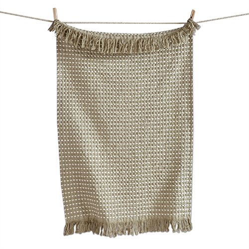 Tag Fringed Kitchen Dish Cloth Waffleweave Dishtowel Olive 20 by 30 Set of 2