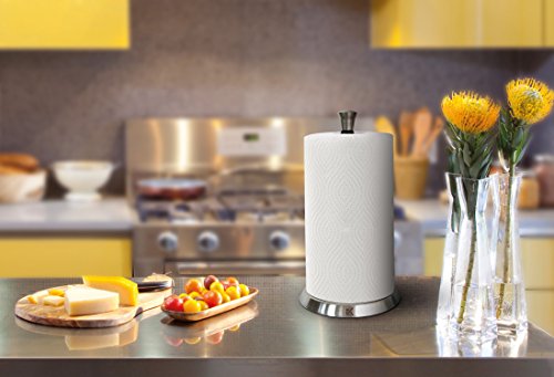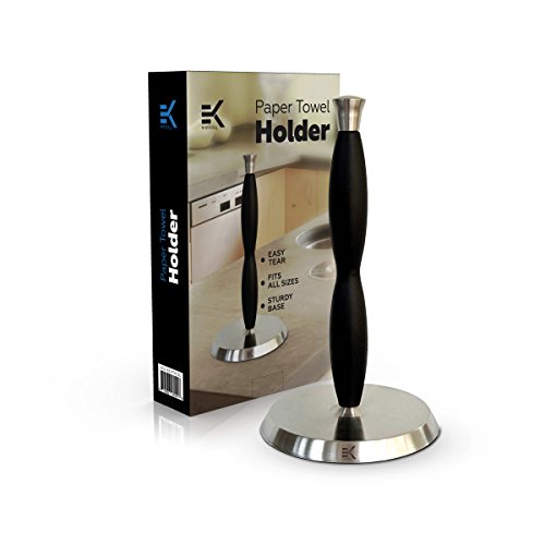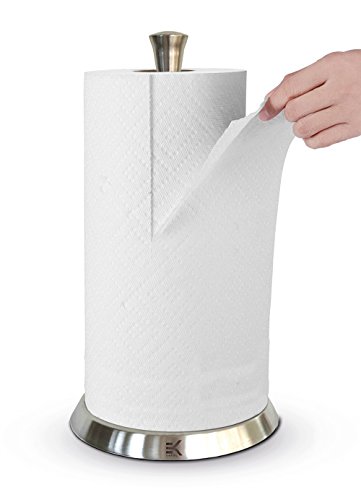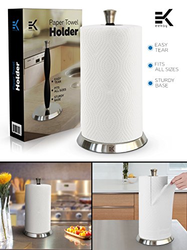 Eekay Wares Upright, Stainless Steel, Silicone Grip, Counter Top Easy Tear Paper Towel Holder - Fits All Roll Sizes