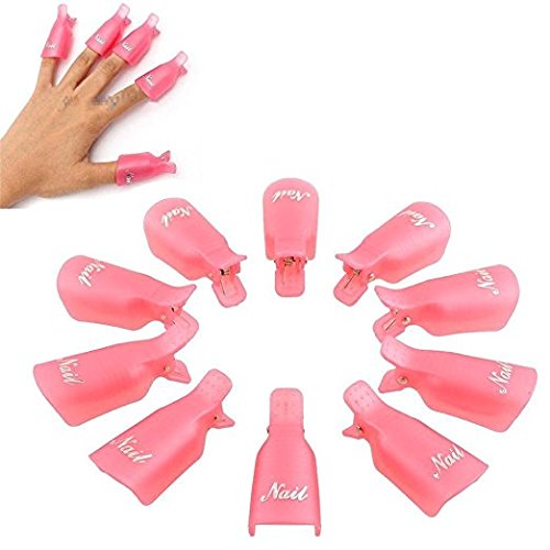 Onwon 10pc Professional Plastic Acrylic Nail Art Soak Off Cap Clip Uv Gel Polish Remover Wrap Cleaner Clip Cap Tool (Pink)