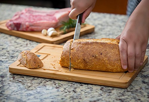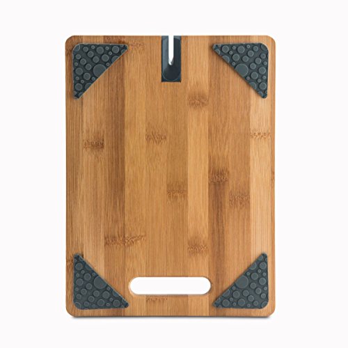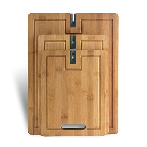 Modernhome 3 Piece Chef's Bamboo Cutting Board Set with Built-In Knife Sharpeners and Non-Slip Silicone Grips, Natural