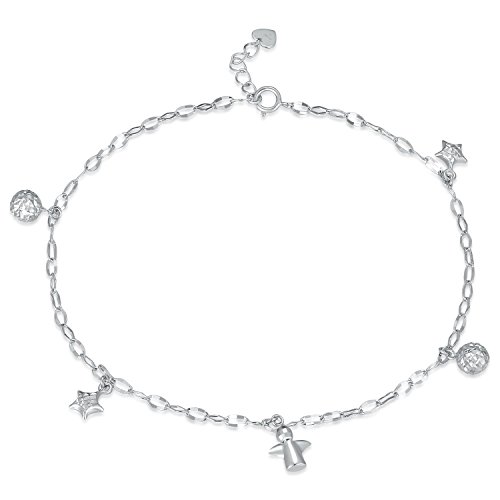 -. Feature : Perfect Gift Ideas For Anniversary, Birthday, Christmas Gift For Her / The Charms Are Crafted With Diamond Cut To Give Much Shininess / Crafting In 14K White Gold And Stamped 585 For 14K Gold / The Length Of Anklet Is 23.5cm (About 9.25 Inches); The Sizes Of Stars, Beads and Angel Are Approximately 6mm, 6mm and 8mm Respectively / Free Beautiful Gift Box Included