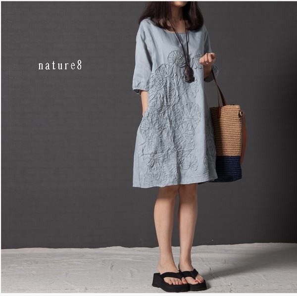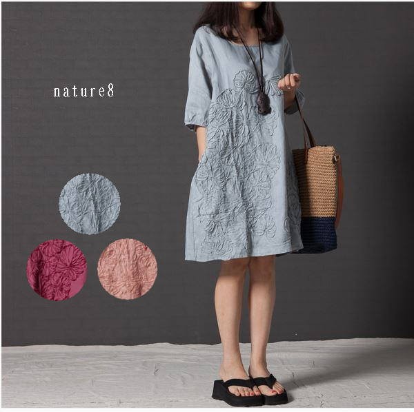 〓〓〓涼しげな綿麻素材のワンピース見頃のポイントもおしゃれスッポリ着れるらくらくなワンピース春夏のおしゃれワンピース◆素材◆/綿麻◆サイズ◆/Mサイズ/バスト106cm/肩幅40cm/着丈85cmLサイズ/バスト110cm/肩幅41cm/着丈86cmXLサイズ/バスト114cm/肩幅42cm/着丈87cm◆カラー◆ブルー系/ピンク系/ワイン系〓〓〓〓〓〓〓〓商品のご案内海外輸入商品の為リーズナブル価格でご提供をさせて頂いております為、下記の事項をご確認ご了承の上ご注文をお願い致します。♯予約商品になります。生産輸入の関係で発送日が前後する場合がございます。♯再生産の関係で画像とデザイン、多少の色具合が異なる場合がございます。♯メジャーでの測定の為若干の誤差はご了承下さい。♯海外生産の為縫製、素材等少し粗めの商品もございます。♯生地不良等の関係で生産中止になる場合がございます。♯海外代理店より輸入の為、商品タグ、洗濯表示がない場合がございます。