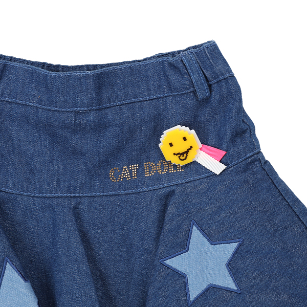 상품설명 데님소재의 스커트 입니다. 요즘 트렌드인 별모티브의 패치자수와 탈착코사지가 큐트한 느낌을 줍니다. 데님스커트라 어떠한 상의와도 코디가 잘됩니다.