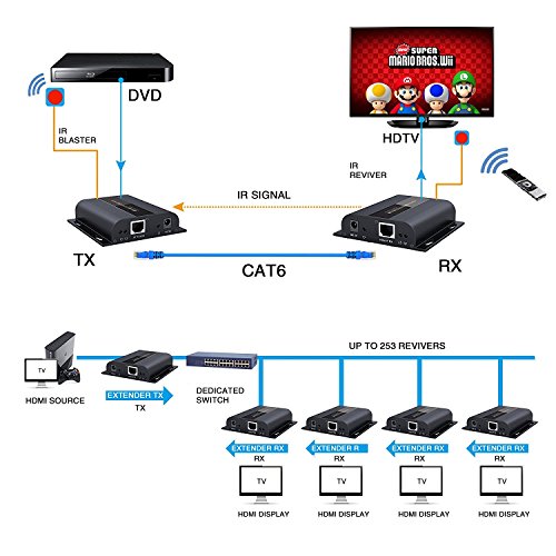 J-Tech Digital HDbitT Series ONE TO MANY CONNECTION HDMI Extender (Full HD 1080P) Up to 400 Ft (Receiver + Transmitter)