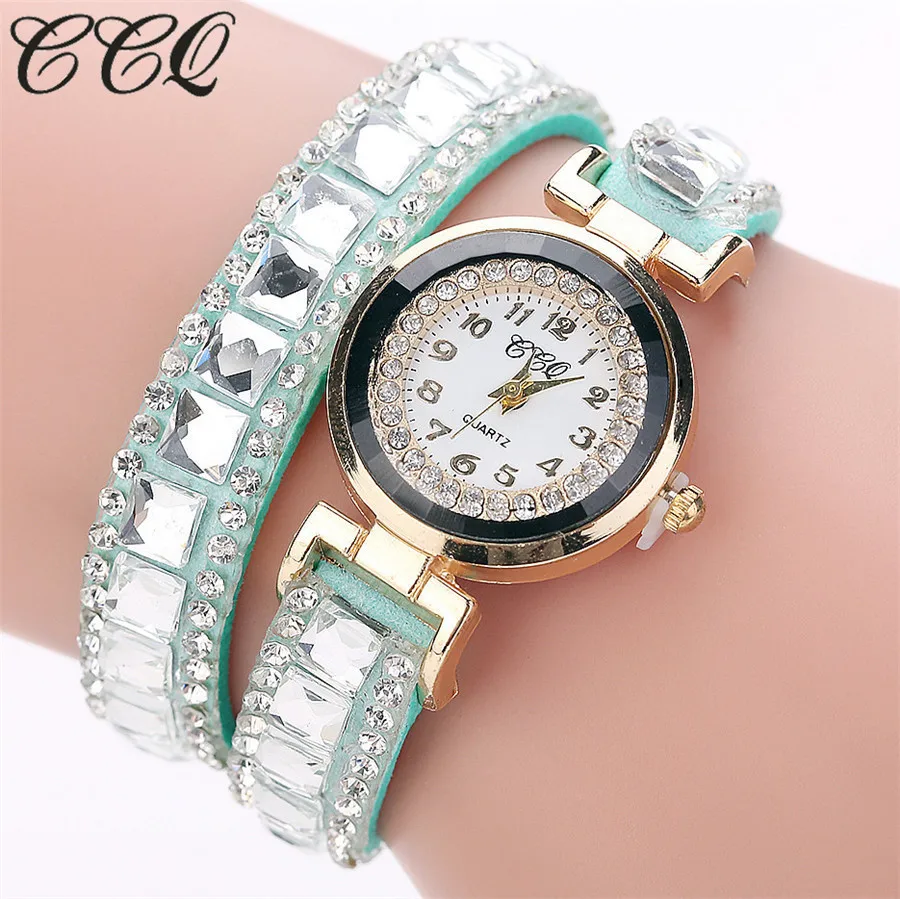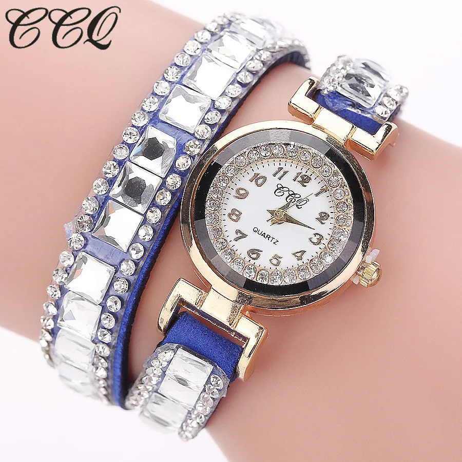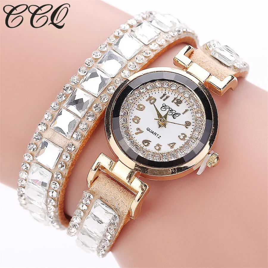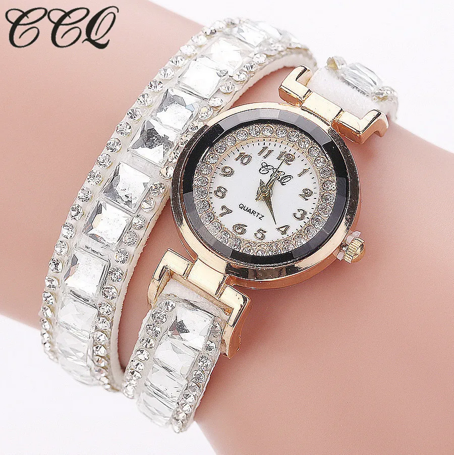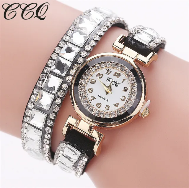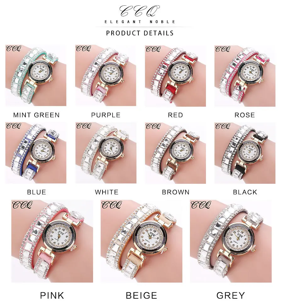 | [해외] CCQ 브랜드 패션 럭셔리 여성 전체 크리스탈 팔찌 시계 여성 석영 캐주얼 여성 손목 시계 Relogio Feminino 선물 핫 |