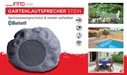Bluetooth Gartenlautsprecher, wieder aufladbar, in Steinoptik, Spritzwassergeschutzt (IP44), hergestellt aus wetterfestem Polyresin,