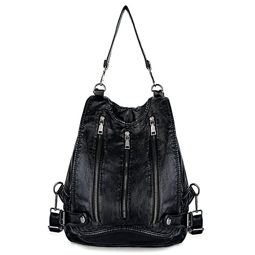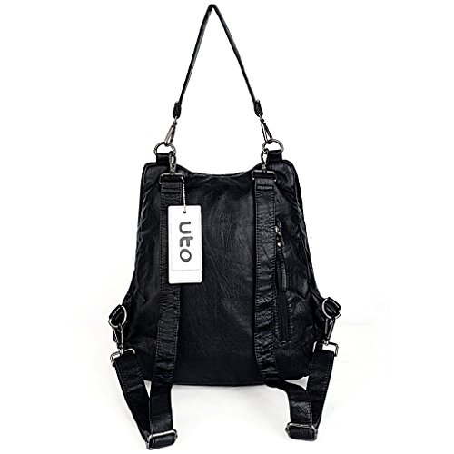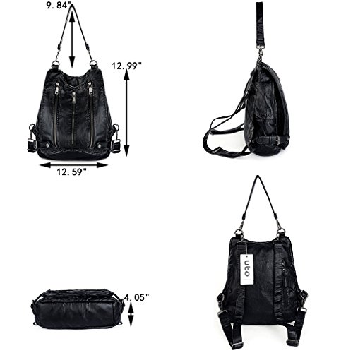 -. Brand : UTO -. Color : Black -. Department : womens -. EAN : 0601285960302 -. Feature : HIGH QUALITY - Ultra soft synthetic washed leather with modern black hardware, waterproof and anti-scratch. 2 adjustable/detachable back straps and 1 removable top loop handle. / WELL DESIGN - Triple Front Zipper Pockets design on flapover. Full-lined coffee fabric lining. DETAILED STREAMLINED DOUBLE STITCHING ON EVERY SEAM. / LARGE CAPACITY - Interior: 1 magnetic closure pocket, 1 large zipper compartment contains 1 internal zip pocket and 2 open pockets. Exterior: 3 front zipper pockets and 1 back zipper pocket. / EXTREMELY PRACTICAL - Comfortably holds a 9.7" iPad Pro, tablet or a laptop 10" and under. Exterior pockets can hold your smartphone, iPad Mini and other essential items. / DIMENSIONS - 12.59"L x 4.05"W x 12.99"H. Weight: 2.18 pounds. Adjustable back straps: 34.44"(longest size). Handle drop: 9.84". -. Model : 18000268-1 -. MPN : 18000268-1 -. PartNumber : 18000268-1 -. ProductGroup : Shoes -. ProductTypeName : HANDBAG -. Title : UTO Women Backpack Purse PU Washed Leather Triple Front Zipper Convertible Ladies Rucksack Shoulder Bag -. UPC : 601285960302