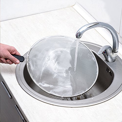 YOUR SAFETY COMES FIRST. Protect yourself and your family from keeping hot oil and grease splash off your hands and clothes with our screen protector for cooking. The new design with plastic handle protects you from getting a hand burn