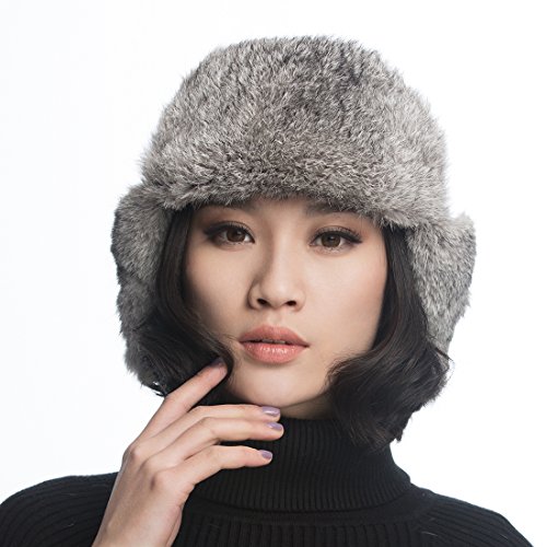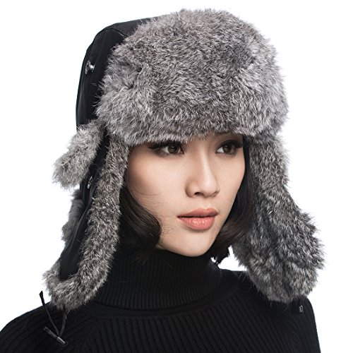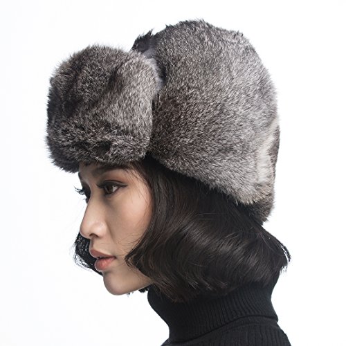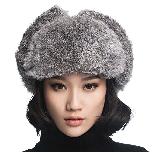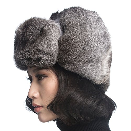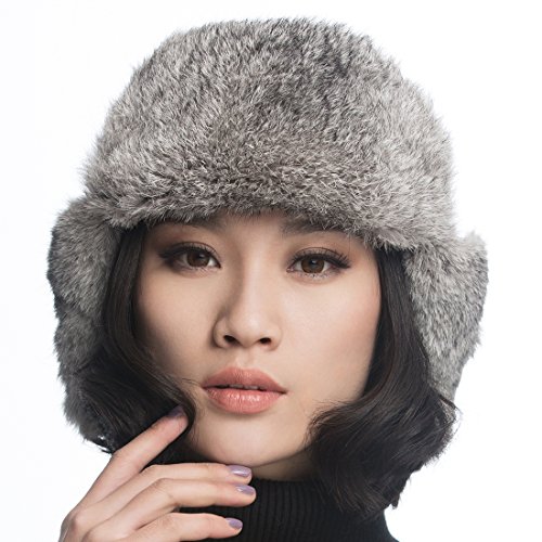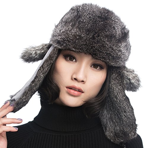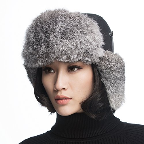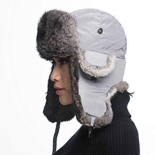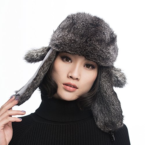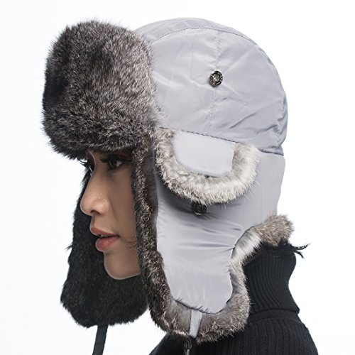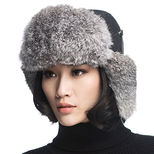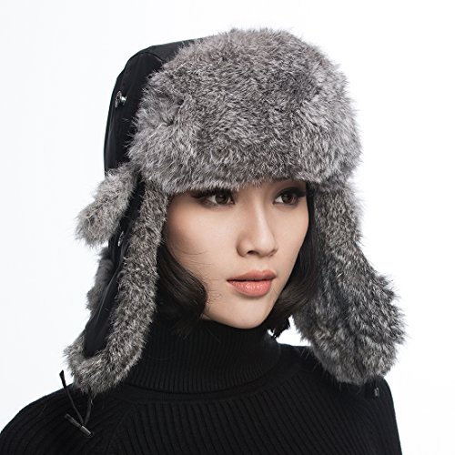 | URSFUR Aviator Hat with Grey Rabbit Fur |