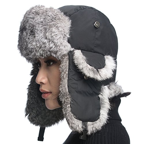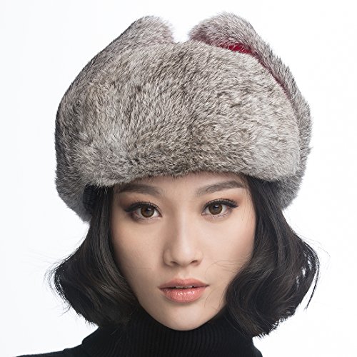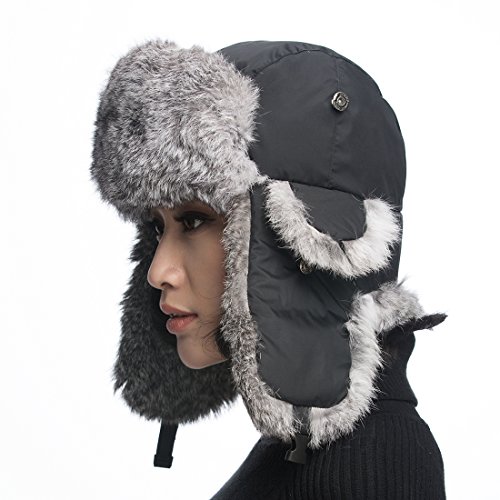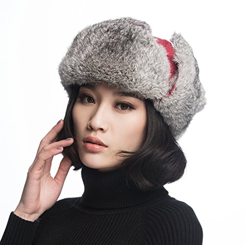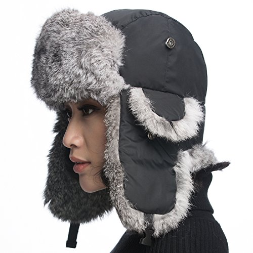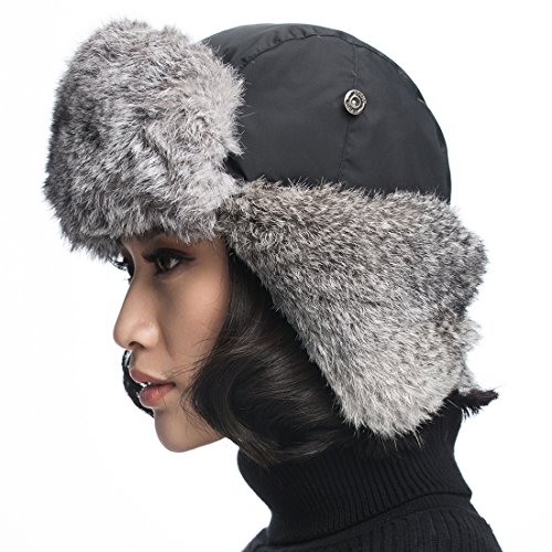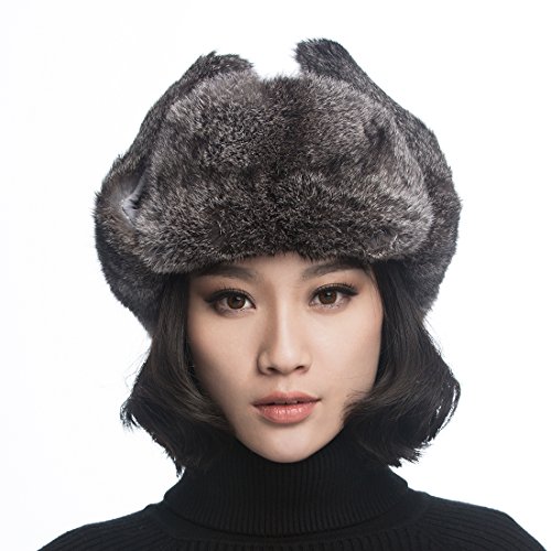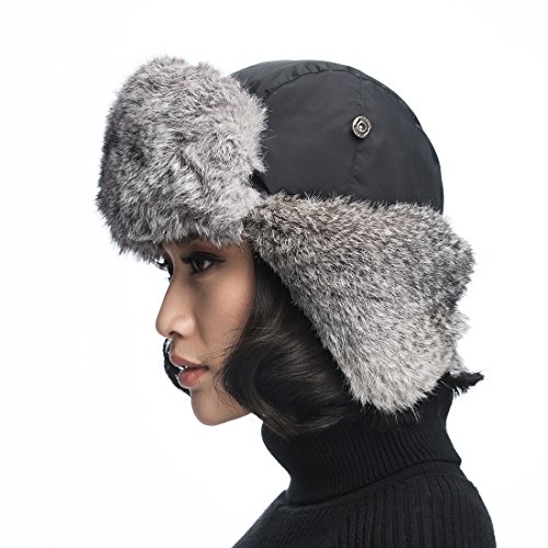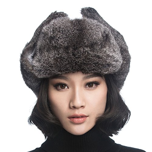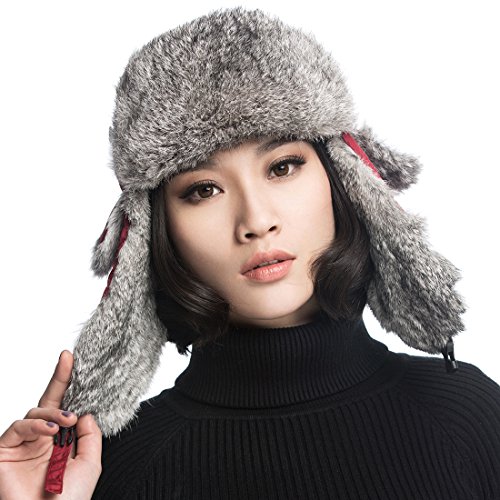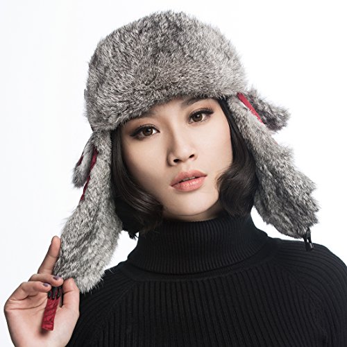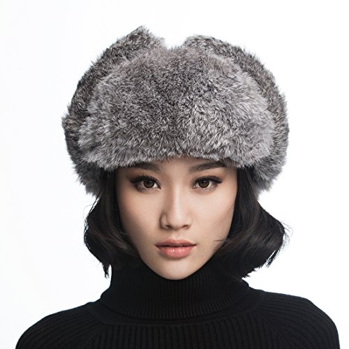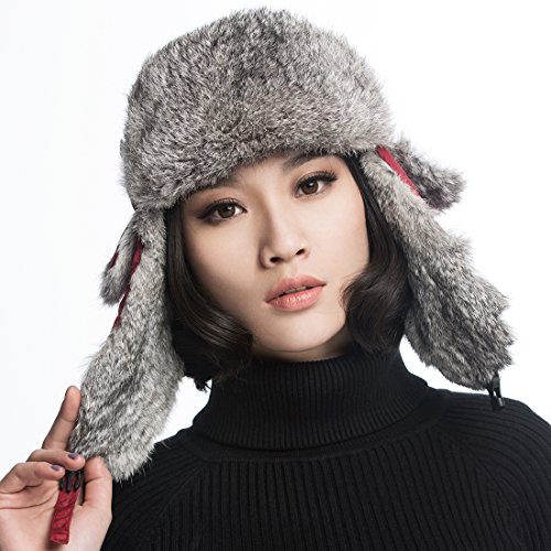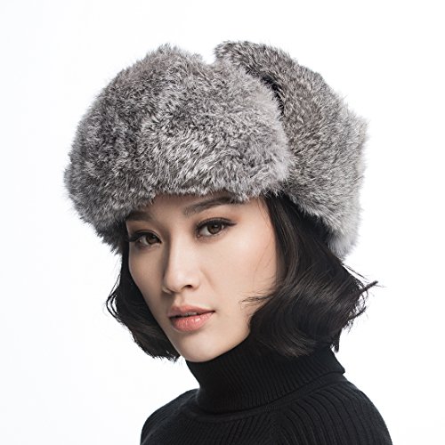 | URSFUR Aviator Hat with Grey Rabbit Fur |