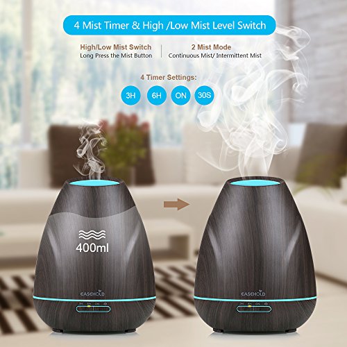 400ml Large Capacity Long Working: 400ml water tank full refilled can support up to 8-10H continuously. If you set it mist intermittently, then it can support even to 20H. The diffuser will auto off when water runs out.