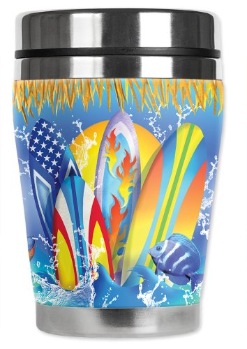 Mugzie Surfboards "Mini" Travel Mug with Insulated Wetsuit Cover, 12 oz, Black