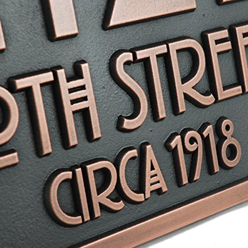 -. Feature : Handcrafted and made in the USA with products from the USA. Custom made for you. / Comes with keyhole style mounting and screws. Template is also included for easy installation by you / Made of 30 pound HDU (type of plastic) that won't warp, rot or promote insects and is fine outside / Coated with a metal coating that won't flake or peel. Looks like cast but at fraction of the P.R.Ice. / Size is 12.5 x 8.75 x 1 inches. Lettering will be raised and plaque will be metal coated in our Copper finish. Any questions please EMAIL us. Thank you for your business!