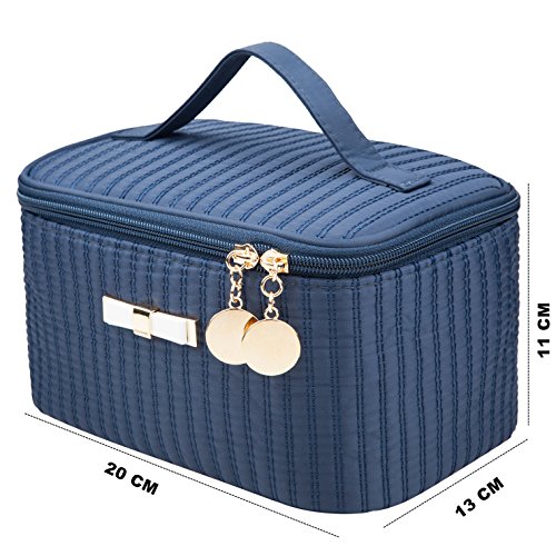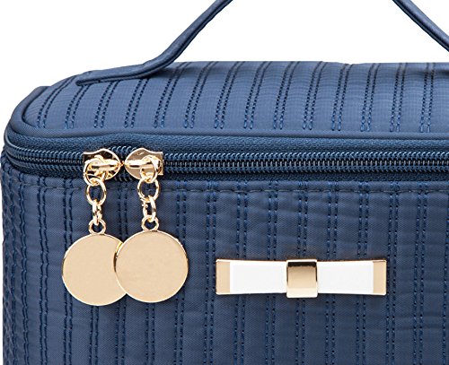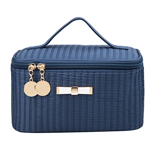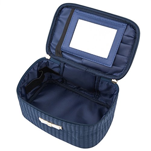 Alsomtec Multi-function Makeup Cosmetic Bag single layer with quality zipper travel Makeup Bag Toiletry Travel Kit With mirror (Dark blue)