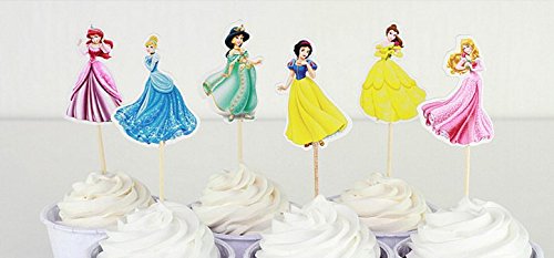 Princess Party Cupcake Toppers Birthday Party Supplies 24pcs (4 Ariel, 4 Cinderella, 4 Jasmine, 4 Snow White, 4 Belle, 4 Aurora)