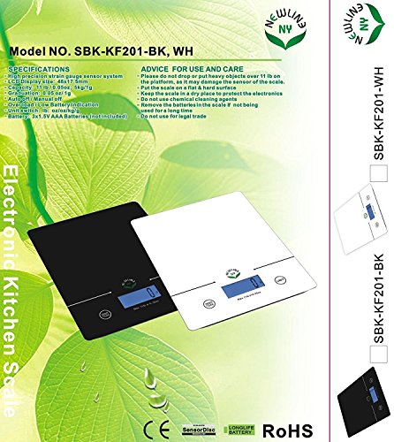 NewlineNY 11 Lb Capacity Touch Pad Digital Kitchen Scale, SBK-KF201-WH White