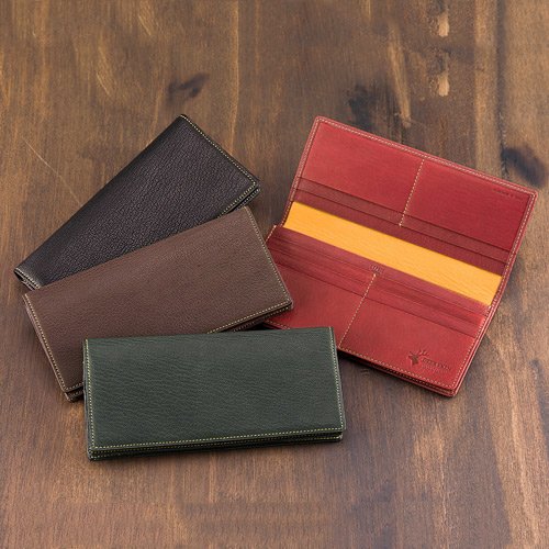 -. Feature : 【素材】表側:鹿革  内側:鹿革 裏地:合皮 / 【サイズ】縦:9.0cm 横:19.0cm 厚み:2.0 cm ※おおよそのサイズです / 【生産国】日本 / 【仕様】札入れ×1 小銭入れ×1 カード入れ×10 ポケット×2