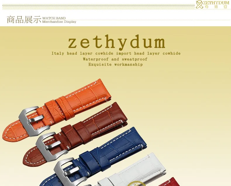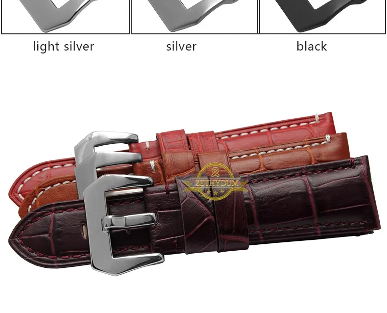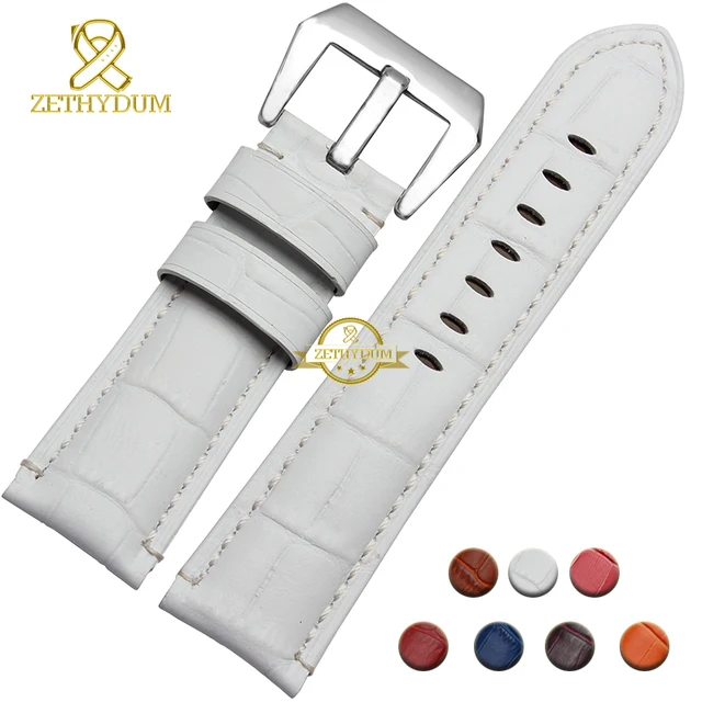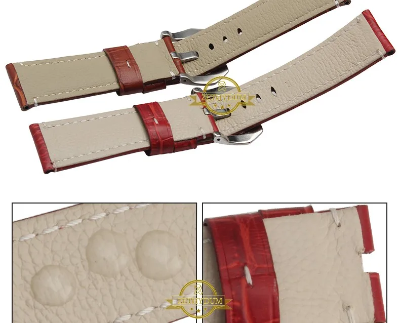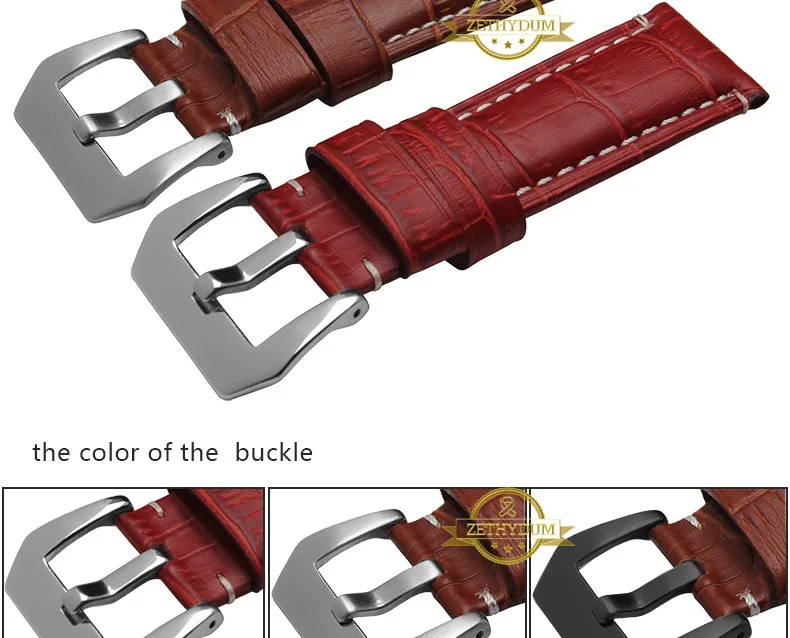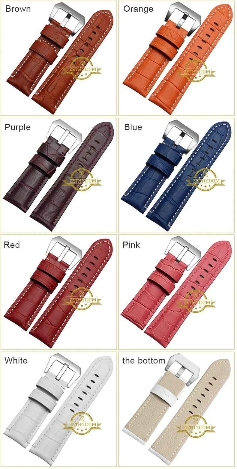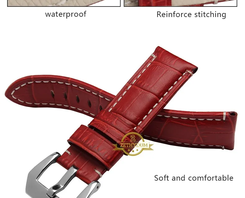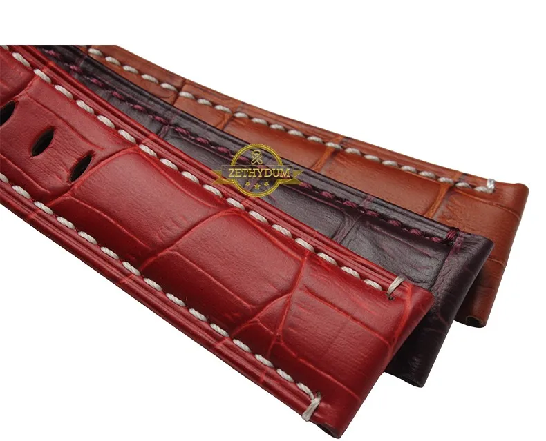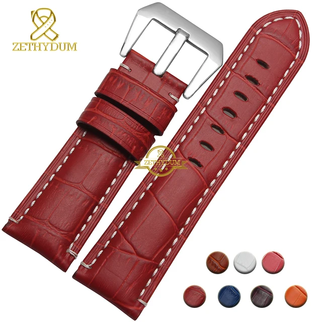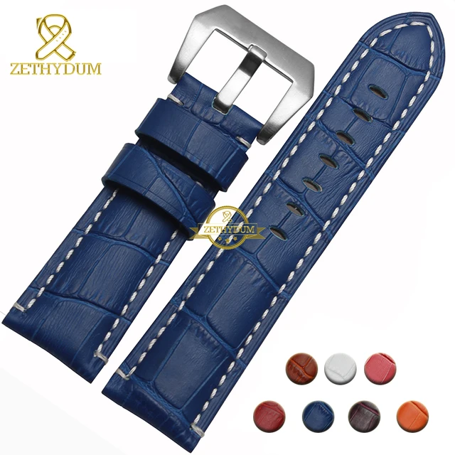 | [해외]정품 가죽 팔찌 24 미리메터 두꺼운 시계 밴드 블랙 레드 블루 퍼플 스티치 손목 시계 남성 손목 시계 스트랩 벨트 핀 버클 |