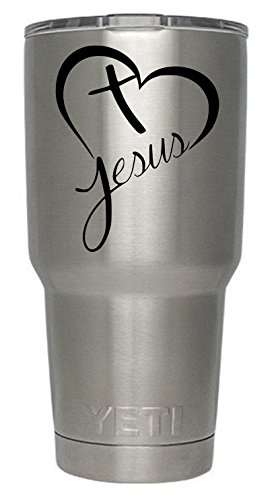 Jesus Cross in Heart Decal for Yeti Tumbler -Decal - Ozark Trail Tumbler decal - Black or White - Decals - 3.7" H X 3.2" W