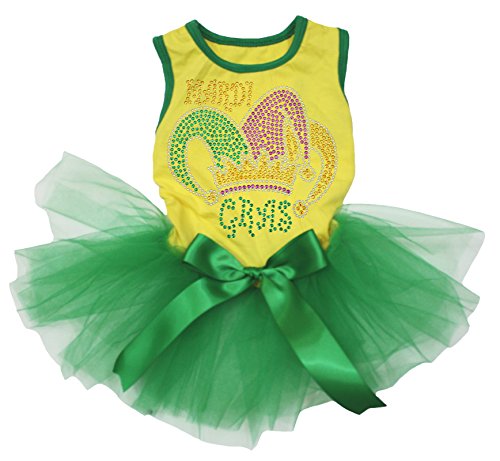 -. Binding : Misc. -. Brand : Petitebella -. Color : Yellow -. Feature : a 1pc pet dress (not include other accessory) / stretchy cotton top / made by lightweight material / novelty 1-piece dress for pet / pet dress in yellow color, suggested for Mardi Gras -. Label : Petitebella -. Manufacturer : Petitebella -. Model : GT069 -. MPN : GT069 -. PackageQuantity : 1 -. PartNumber : GT069 -. ProductGroup : Pet Products -. ProductTypeName : PET_SUPPLIES -. Publisher : Petitebella -. Studio : Petitebella -. Title : Puppy Clothes Dog Dress Mardi Gras Wear Crown Print Yellow Top Green Tutu