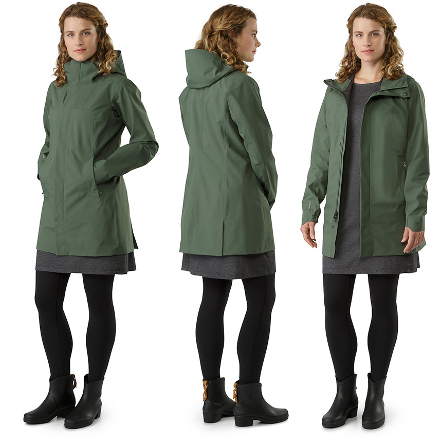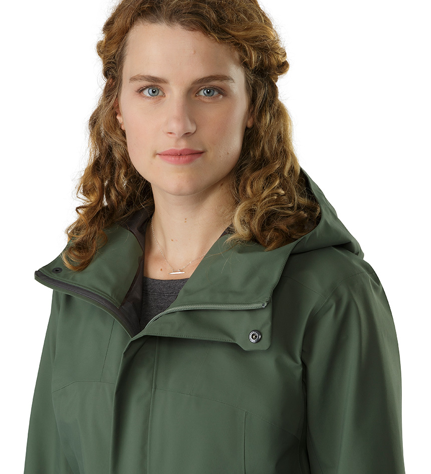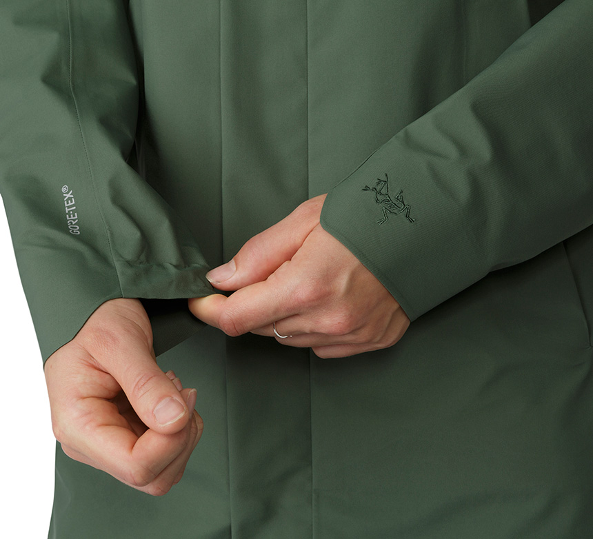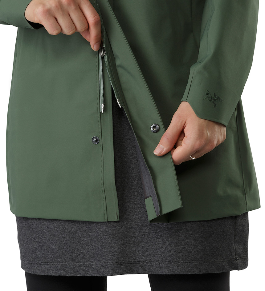 덮개가 있어 외부로 드러나지 않는 컨실드 지퍼가 적용되었으며 뒤트임 디자인으로 활동의 편이를 제공하는 도시감각적인 GORE-TEX® 레인코트.