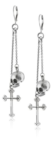 King Baby Skull and Traditional Cross Drops Leverback Earrings
