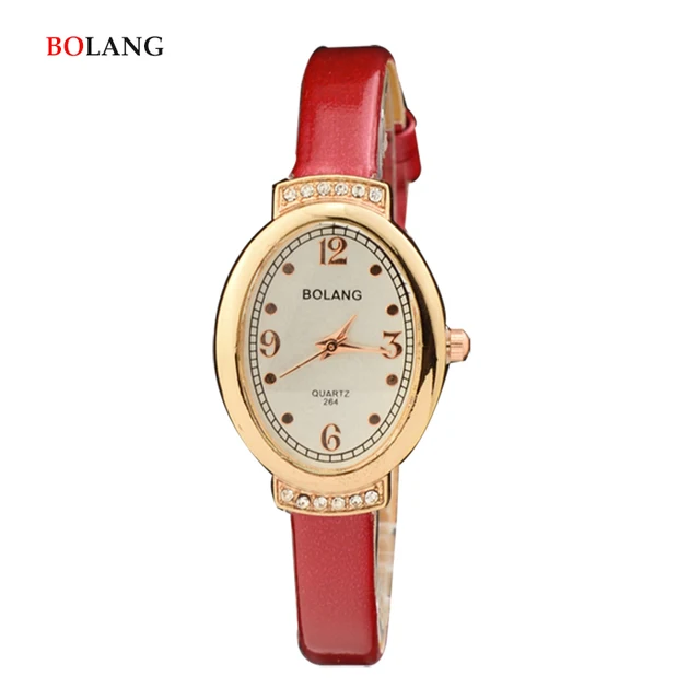 BOLANG 패션 작은 석영 여성 손목 시계 여성 우아한 타원형 시간 레드 파티 여성 팔찌 시계 2017 축제 선물
