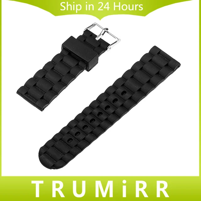 | [해외] 22 미리메터 24 미리메터 범용 실리콘 고무 손목 교체 시계 밴드 팔찌 스트랩 스테인레스 스틸 버클 블랙 |